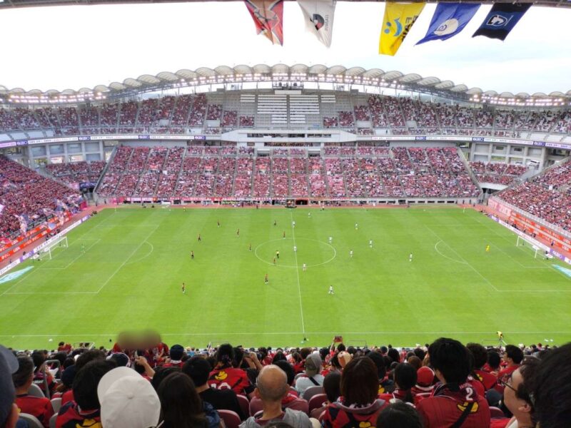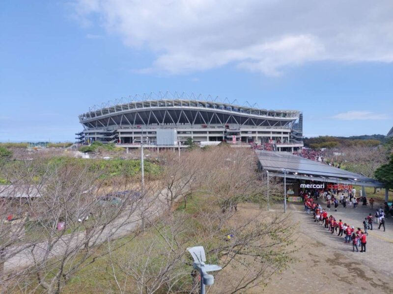メルカリロードにメルカリスタジアムの文字が見えます。